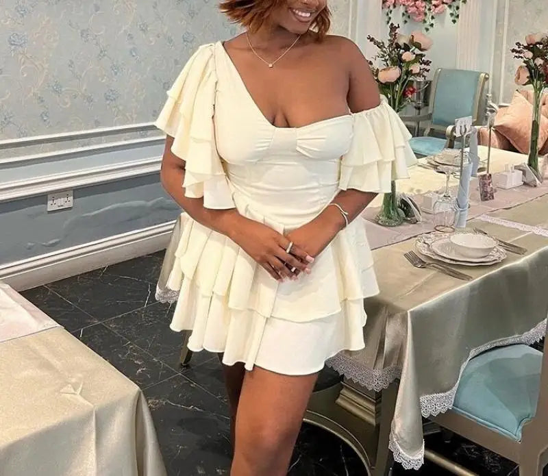 ๐ธ Lotus Reverie Slanted Shoulder Summer Dress โ Soft Drama, Sculpted Elegance