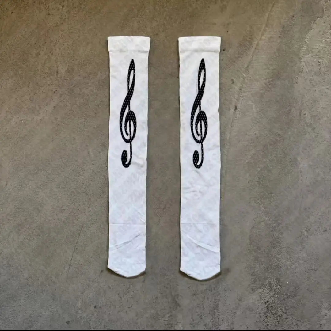 She’s not just walking—she’s making noise. The Street Siren socks are a Y2K subculture fantasy stitched in bold graffiti print and unapologetic attitude. Designed to climb high over the knee, these soft stretch socks hug your legs like a second skin, turning every step into a statement.